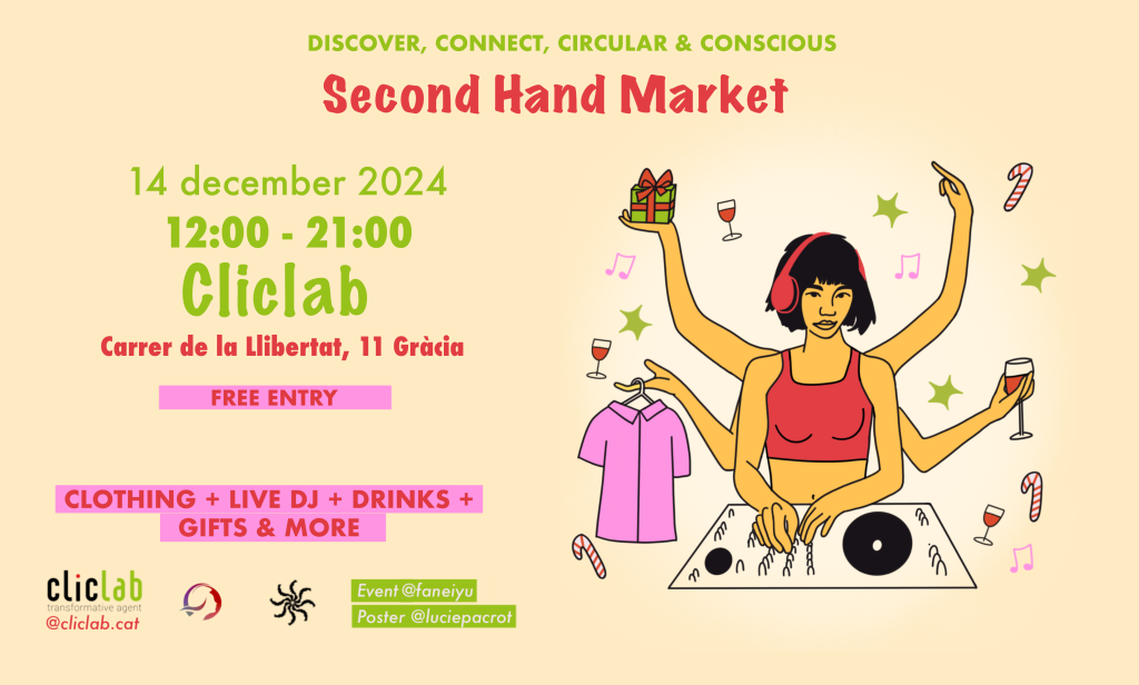 @thecircularcollective presents and invite you to the Second-Hand Market: Celebrating conscious & circular choice 📅 14 December 2024 ⏰ 12:00pm a 9:00pm 📍 Cliclab, Carrer de la